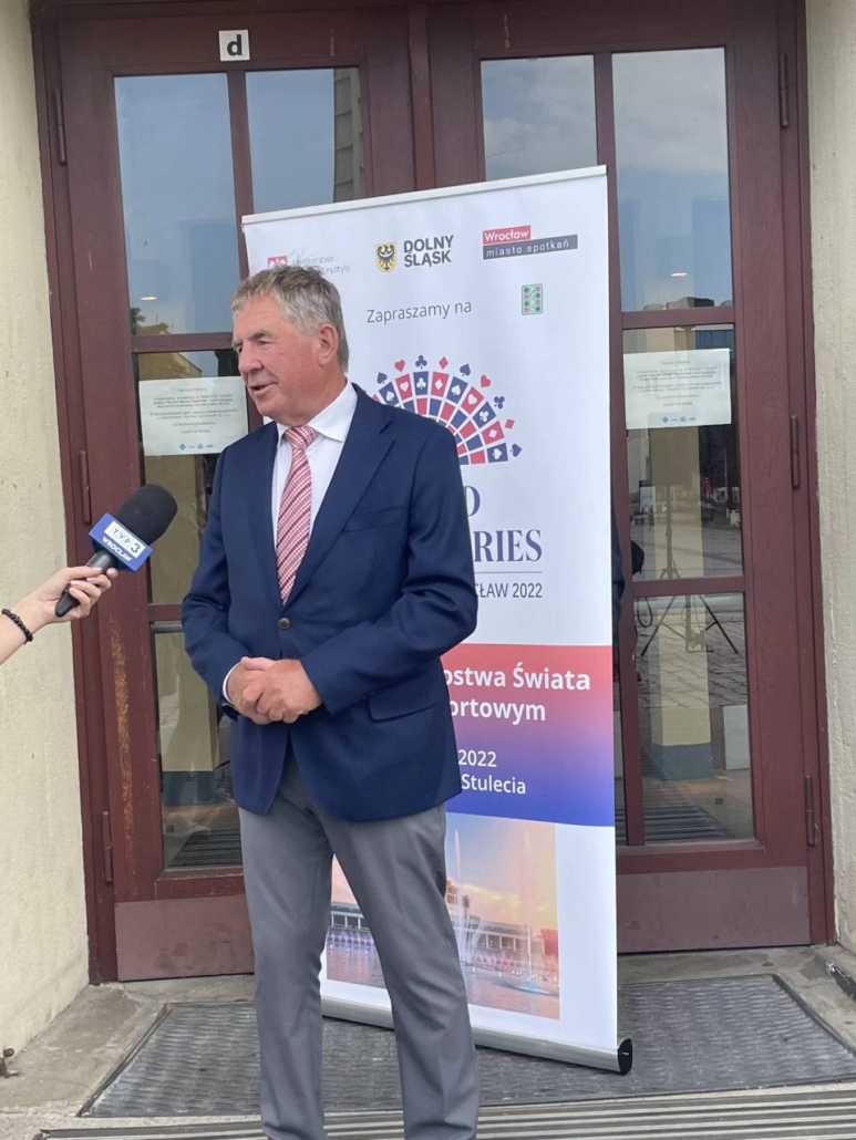 W poniedziałkowe przedpołudnie na Placu pod Iglicą przed Halą Stulecia odbyła się oficjalna konferencja prasowa zapowiadająca Otwarte Mistrzostwa Świata w brydżu sportowym – World Bridge Series Wrocław 2022.